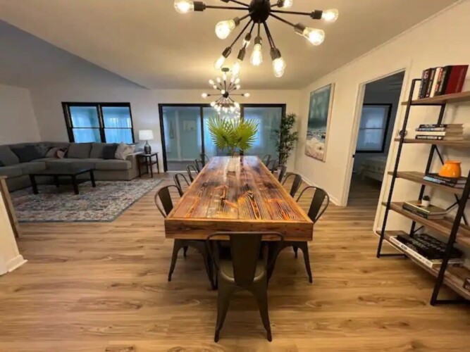 Newly remodeled, sleek, clean, modern, family-friendly home nestled between the Intercoastal Waterway and the Atlantic Ocean! Walking distance to public beach access and restaurants. Enjoy time spent by the full-sized pool. This 5BD/3BA home has room for the whole family! Shopping and premiere golf course 10-minute drive. Great location to relax and make memories with your loved ones! Approved Pets allowed $300/pet 7 night stay or longer. $150 up to 6 nights.