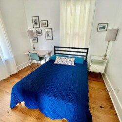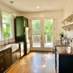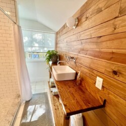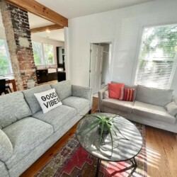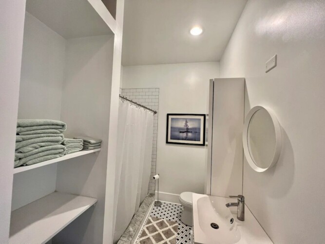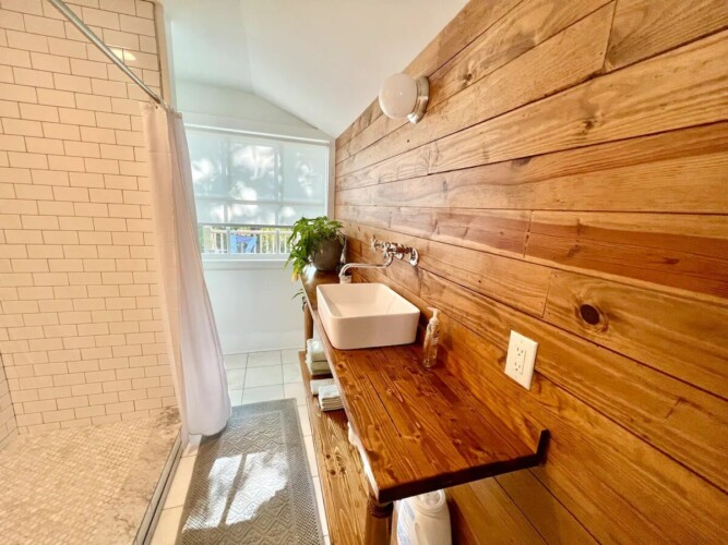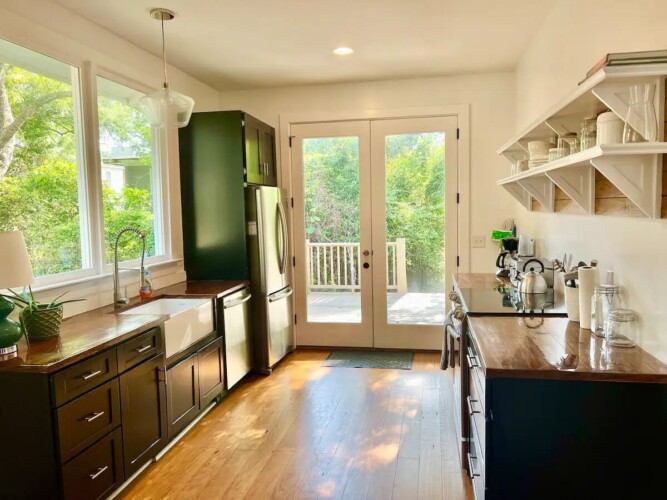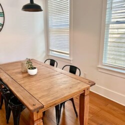 The house includes 2 bedrooms, one with a king size bed and one with a full. The room with the king size bed has an updated ensuite bathroom, and there is an additional bathroom down the hall as well. The cozy living area opens to the bright and sunny dining area and kitchen. There’s a large dining table to enjoy meals at home, and the kitchen is fully stocked to help you prepare them. The back deck is the perfect spot to enjoy your cup of coffee in the morning!