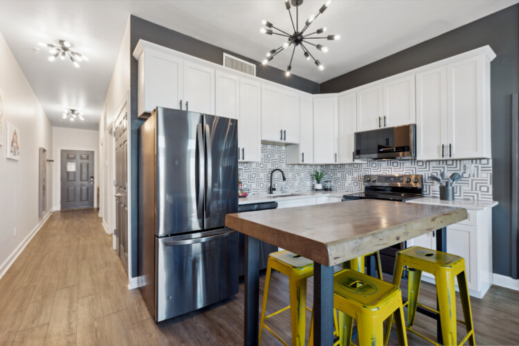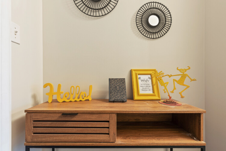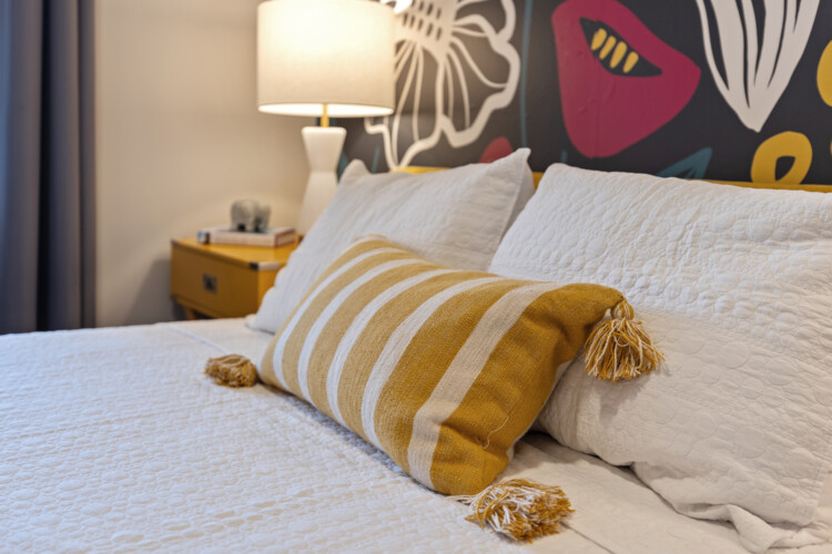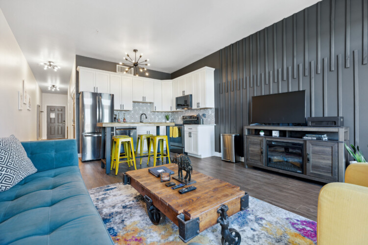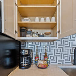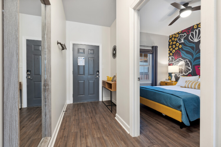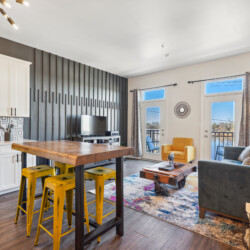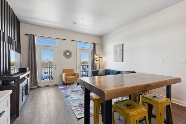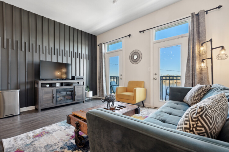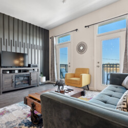 Cape Fear River Condo cannot be beat with its location! It’s a short walk to all restaurants, bars, breweries, and entertainment downtown Wilmington offers. The newly remodeled kitchen features black stainless steel appliances, quartz counters, and a marble backsplash. You’ll be able to work from your laptop or enjoy a home cooked meal at the island table with barstool seating for up to 4. The kitchen is open to the living area that features entertainment options like an HD TV with Roku, a record player with various albums, board games, and an electric fireplace. The queen sleeper sofa allows the condo to sleep up to 4 guests.