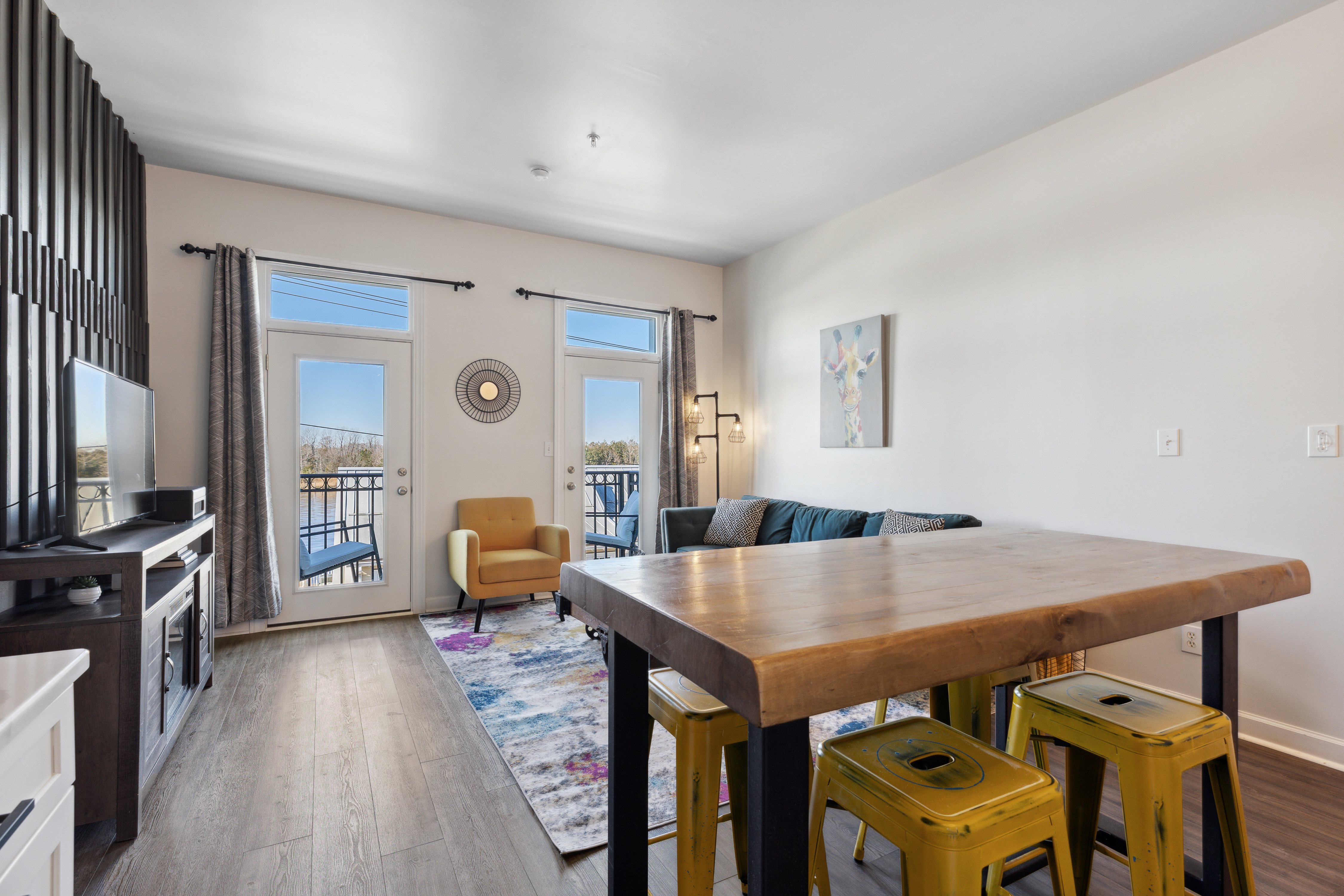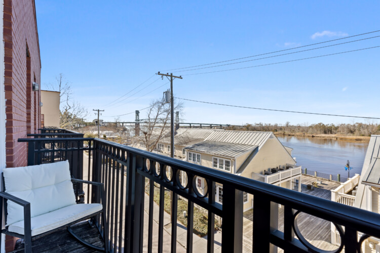 The best feature of the space is the beautiful view from the balcony! Enjoy your morning coffee on the rocking chairs, or end the night with a glass of wine while enjoying a fantastic Cape Fear sunset.