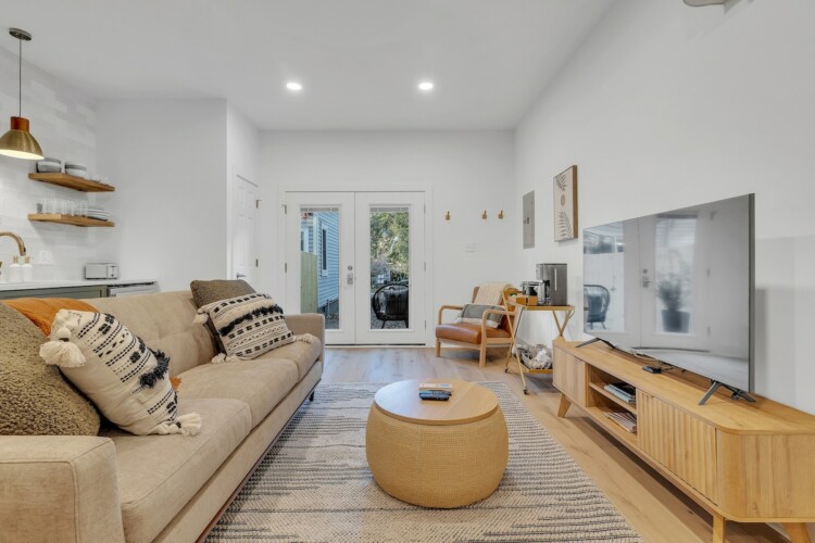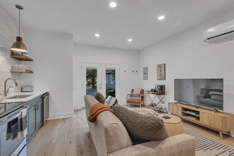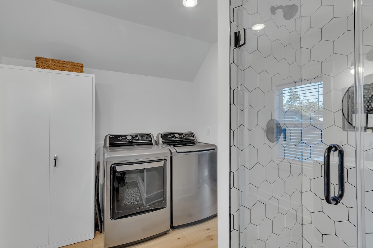 Guests will have access to the entire guest house including the patio, and will be able to check in with the key pad. We have a locked owner’s cabinet in the bathroom for our storage, but otherwise you’ll be able to use everything in the house. Parking is available in the driveway right in front of the guest house. We do live in the main house, but will not interact with you during your stay unless you need something.