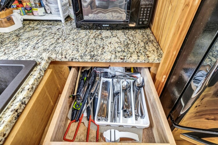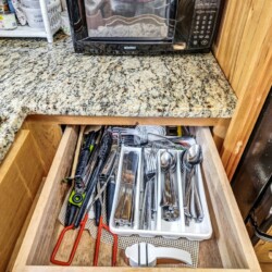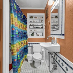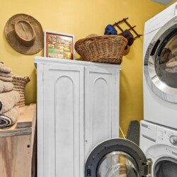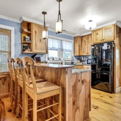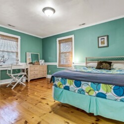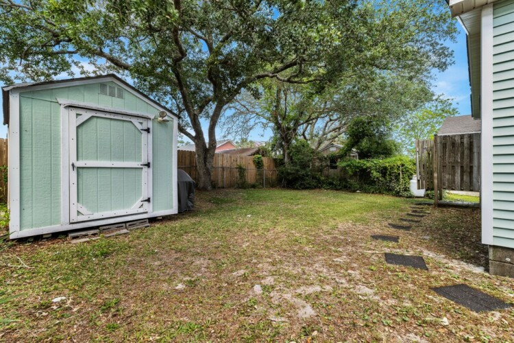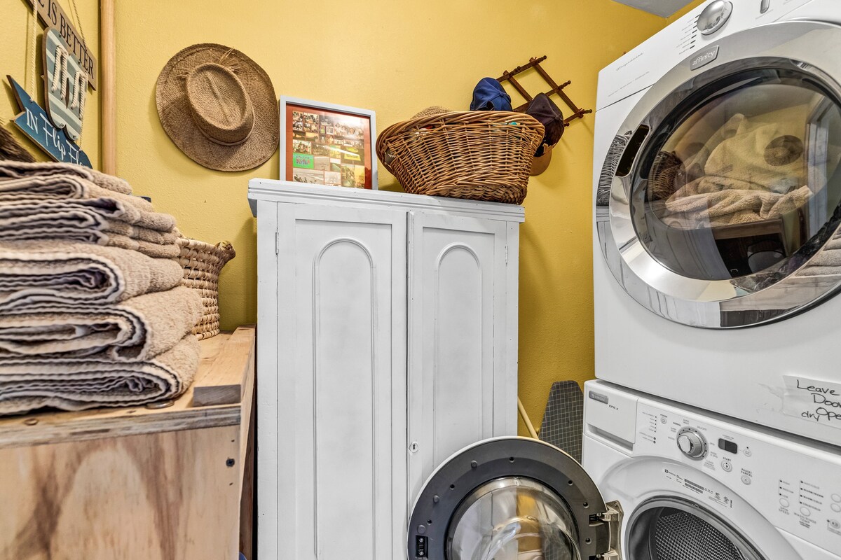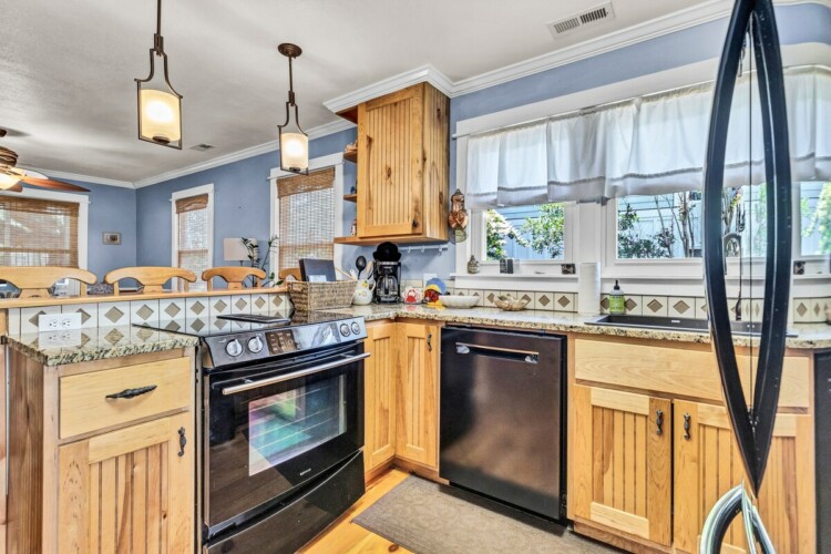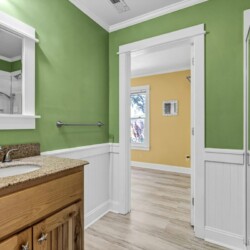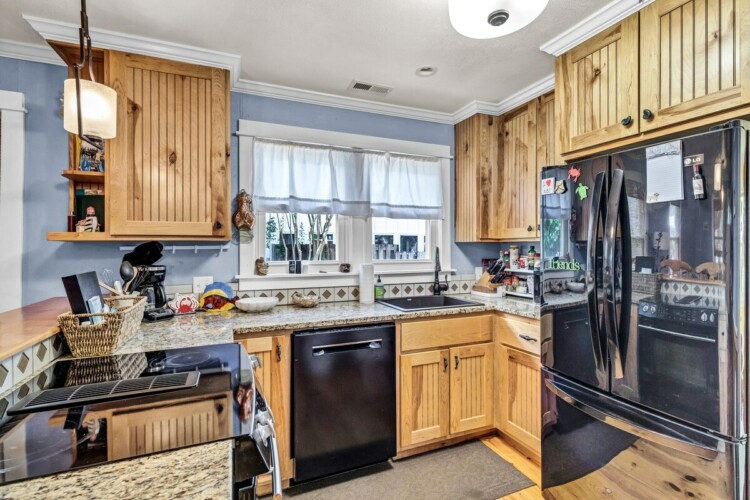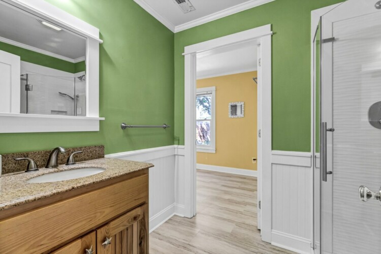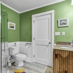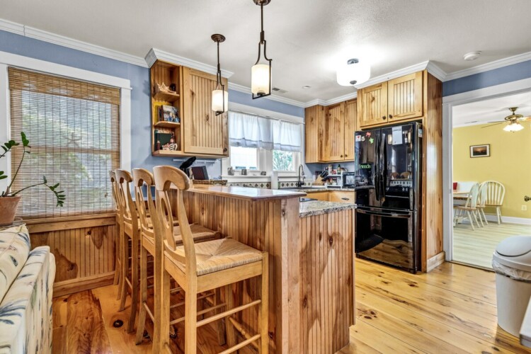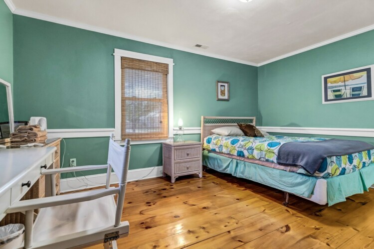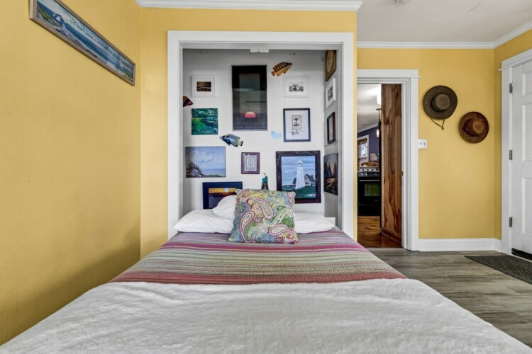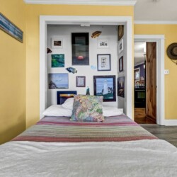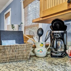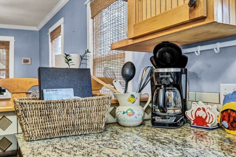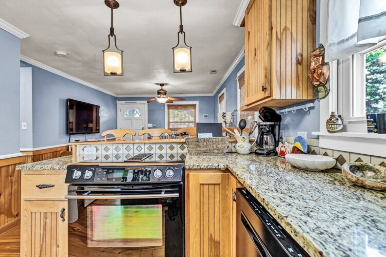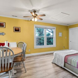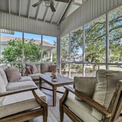 The main living spaces of this home are open concept, so the living room with plenty of seating space for your group opens right into the kitchen. There is counter seating at the kitchen peninsula, and it has been stocked with all of the essentials that you’d need to enjoy a home cooked meal during your stay. There’s an additional dining nook for extra indoor seating as well as an outdoor table. Two of the bedrooms have queen size beds, and there is a murphy bed in the third that can be put up for additional space when not in use. The best part of this home is the outdoor space! There’s an outdoor shower perfect for coming back from the beach, and the screened in porch is a great place to unwind at the end of the day.