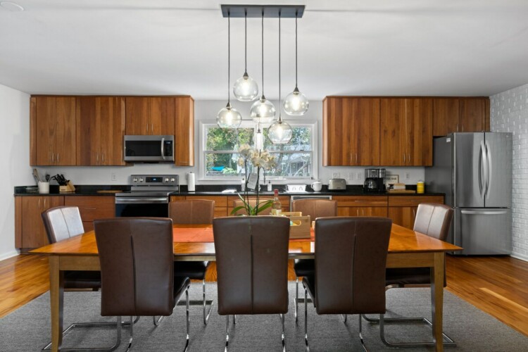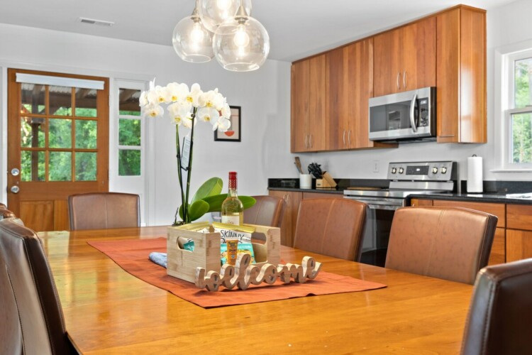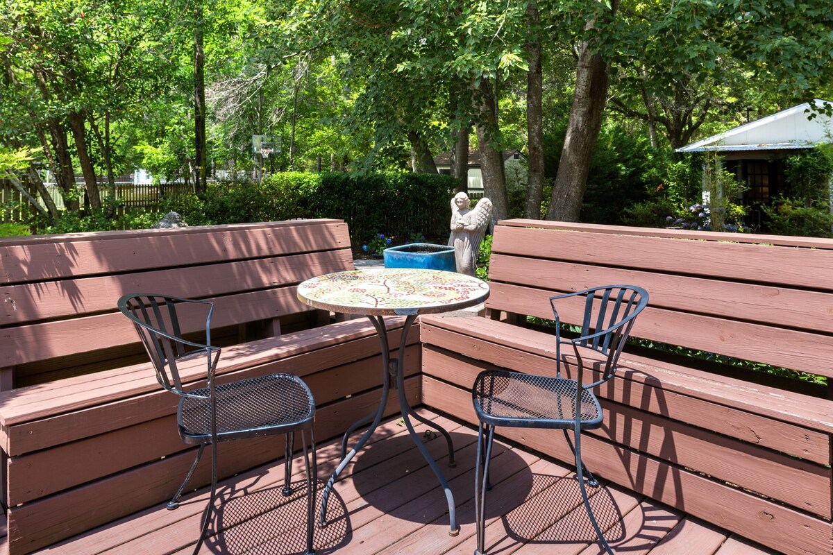 UNWIND AND RELAX – this peaceful retreat awaits you in a great location just around the corner from UNCW and a quick drive from Wrightsville Beach and the historic district. Plenty of room to spread out, this four bedroom, two bath home is fully equipped with all needs for your stay. Giant kitchen and dining room with access to a deck to the back yard offer the perfect place to enjoy your morning coffee or evening glass of wine overlooking the serene Japanese style garden.