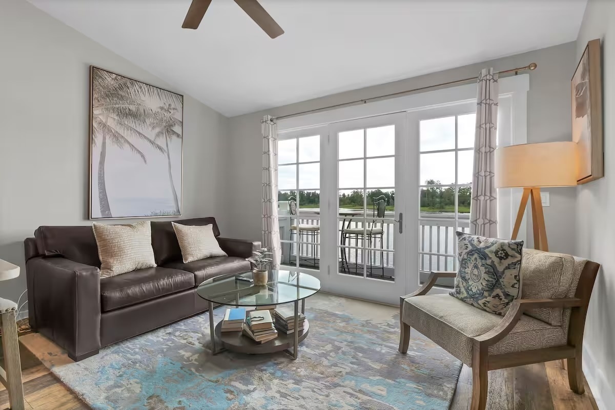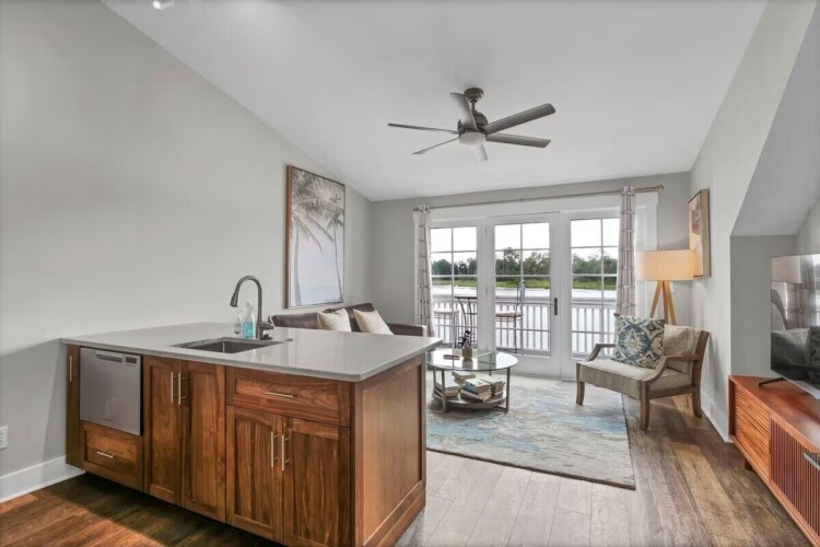 You’ll love the open concept floor plan of the main living spaces which all center around the doors leading to the balcony with amazing river views. The cozy living room has plenty of seating space for your group and leads to the updated kitchen with barstool seating at the peninsula. There’s even a desk if you need to work during your stay. The bedroom is located at the back of the condo and has a king size bed with comfortable linens. The balcony is the best feature of the condo. Start your day by enjoying a coffee on your private space right over the Riverwalk, or end your day with a drink as you enjoy a Cape Fear sunset.
