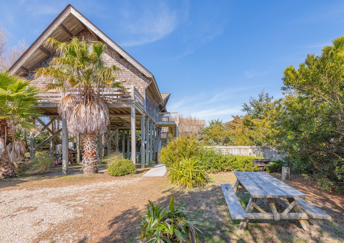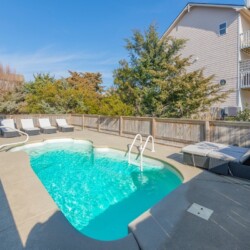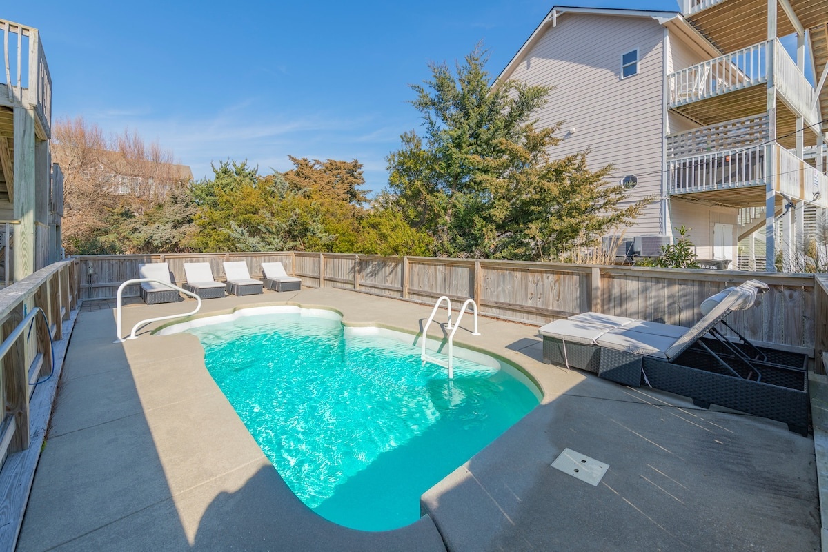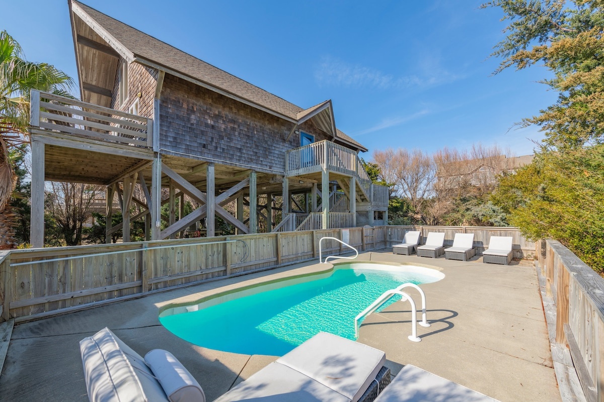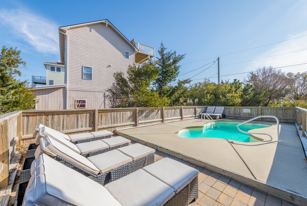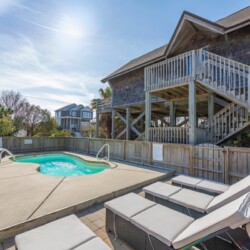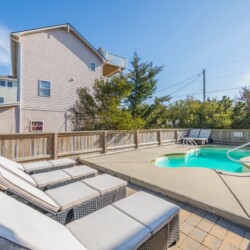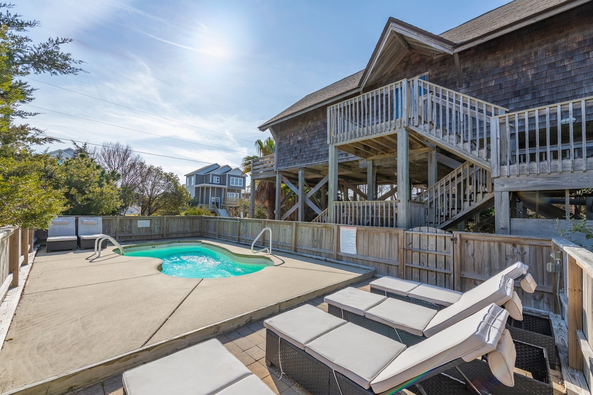 This bright 3 bedroom, 2 bath home is ready to host your next beach getaway! The open living room offers plenty of space to sit back and relax at the end of a long day at the beach. You can enjoy family cooked meals in the fully stocked kitchen that can be shared at the dining table or at the picnic table in the backyard. The private pool will give you a break from the beach and with plenty of lounge chairs to choose from, you won’t have to worry about missing the sun!